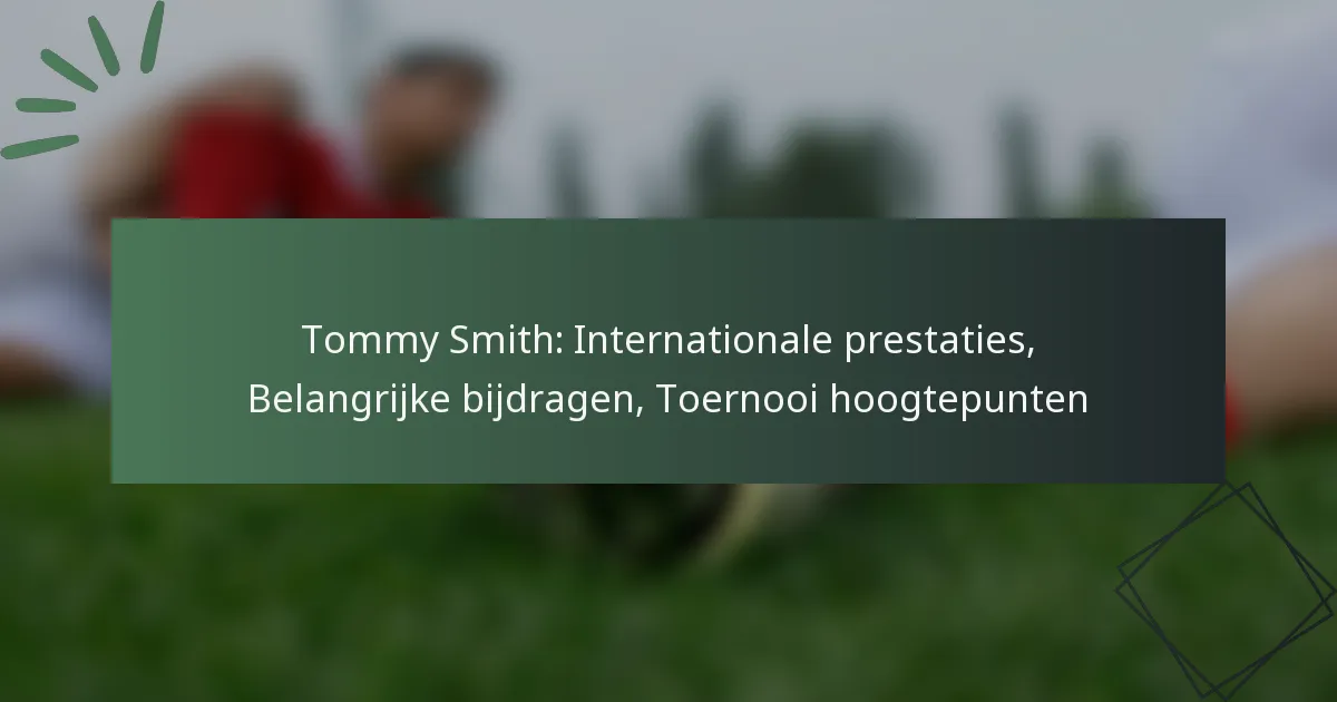 Tommy Smith: Internationale prestaties, Belangrijke bijdragen, Toernooi hoogtepunten